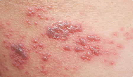 Binnen enkele uren of dagen na de hevige pijn ontstaan blaasjes met helder vocht, meestal gegroepeerd aan één kant van het lichaam. In tegenstelling tot waterpokken verspreiden ze zich niet over het hele lichaam. Ze groeperen zich en vormen ‘trosjes’. Bij intercostale zona (ter hoogte van de borstkas) vormen de blaasjes een band die zich uitstrekt van de wervelkolom tot de zijkant van de borstkas.